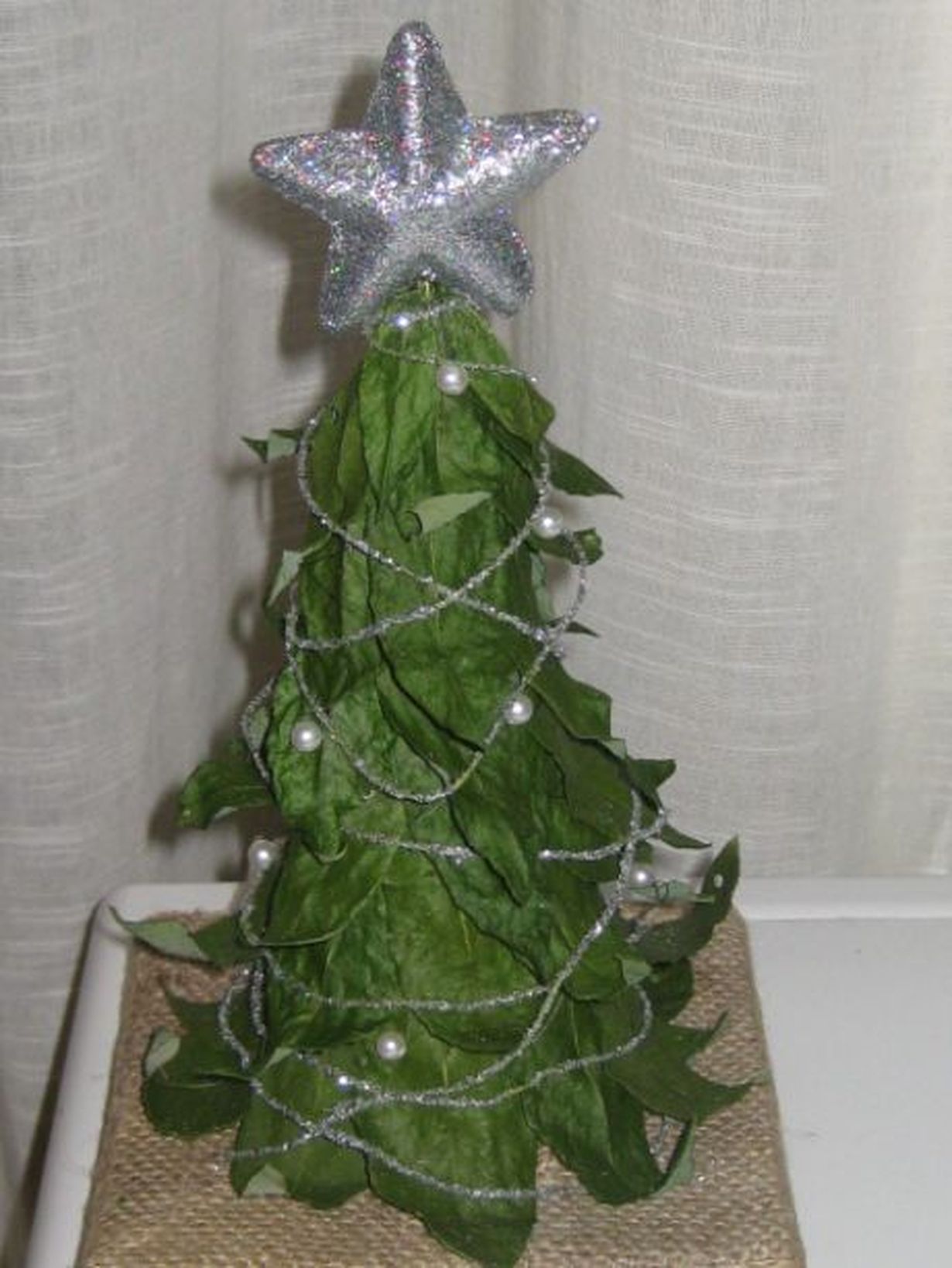 Suuri Käsityö: Lähetä kuva itse tehdyistä joulukoristeista Lehtikuusi 26.10.2015 klo 7:32 Tyhjän lankakartion päällä kuivattuja pajunlehtiä, latvatähti vanhasta koristeesta.