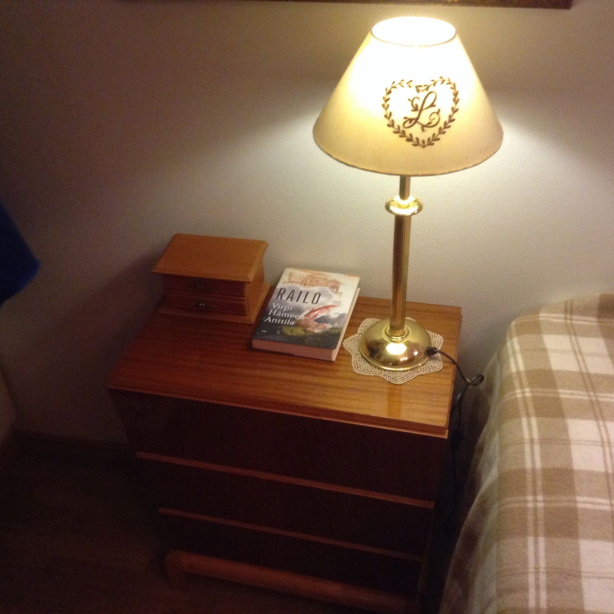 Lampunvarjostin on vanha ostos Tukholmalaisesta Myrorna kirppikseltä. Se sopii myös nykyiseen elämään, jossa avioliiton myötä saatu sukunimi alkaa samalla kirjaimella kuin etunimeni.