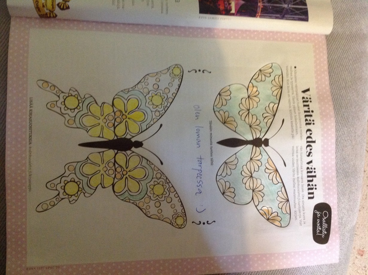 Mielenrauhaa aikuisten värityskirjasta - väritä perhoset ja voita! Loman tarpeessa 30.7.2015 klo 21:06