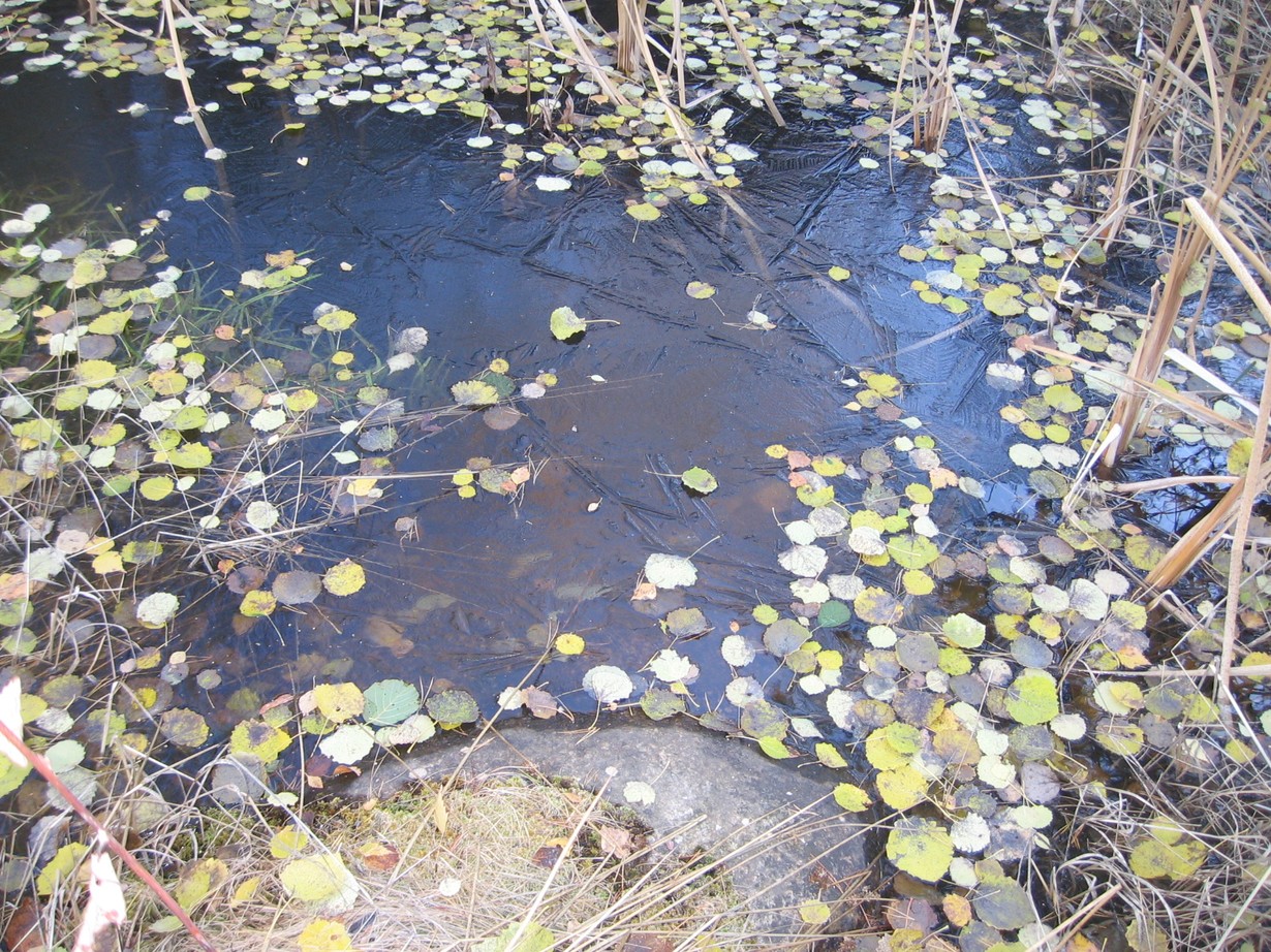 Ruskaa ja ensimmäiset hileet lammikossa, kuvattu Meri-Teijossa, Loka-tai marraskuun kuva. Lomanvietossa oltiin, tämä oli minusta niin herkkä kuva.
