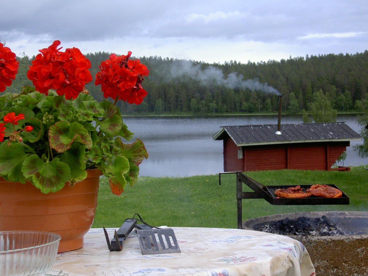 Heinäkuun kuva. Ruotsin Övertorneån kunnassa, Matojärven kylässä, pohjoisen viileänä heinäkuun päivänä. Siian paistuessa grillissä ja ulkosaunan lämmetessä taustalla.