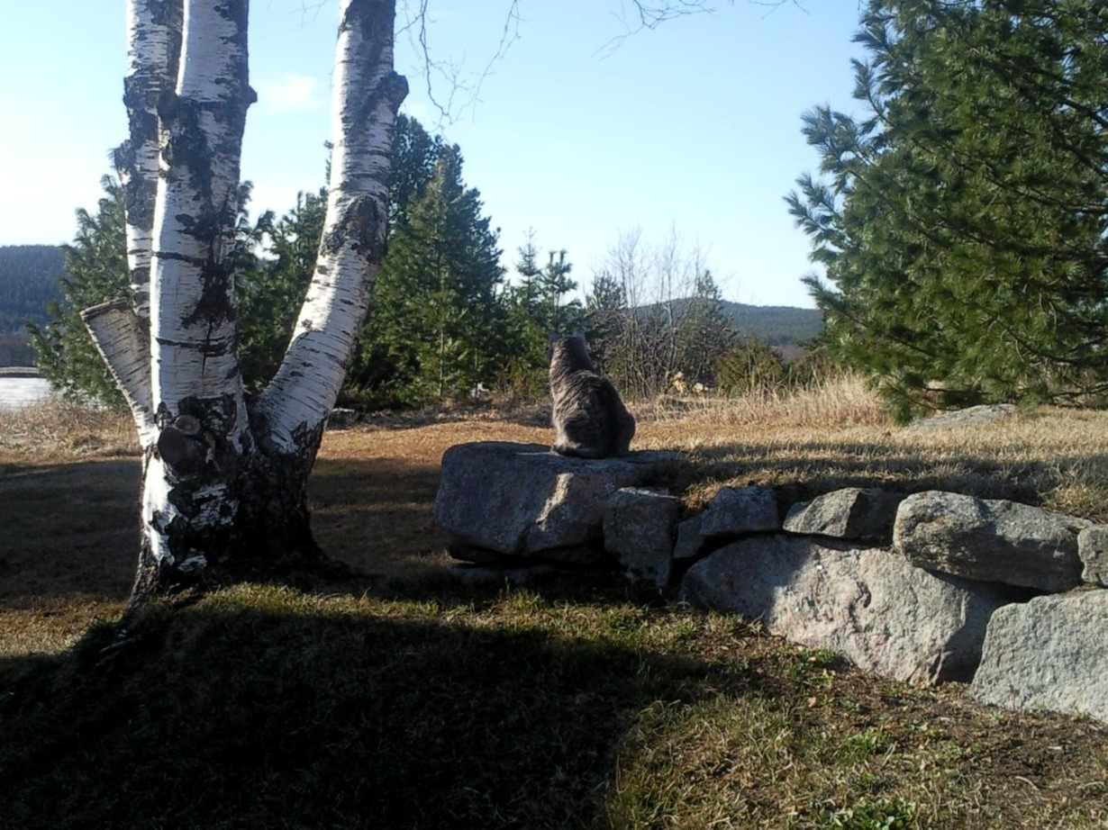 Huhtikuussa 2011 Ylitorniolla, lumien sulatessa poikkeuksellisen lämpimänä keväänä. Kissa katselee kaukaisuuteen vielä jäistä Tornionjokea.