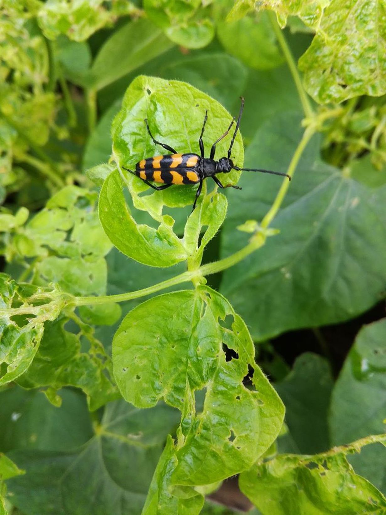 Tämä kävisi minusta heinä- tai elokuun kuvaksi. Kuva on otettu Kuopion/ Nilsiässä elokuun 8 päivä. Kuvassa on nelivyjäärä nauttimassa papu viljelmästäni.