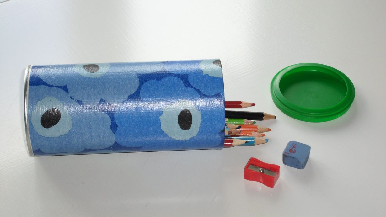 Suuri Käsityö - Itse tehty penaali Marimekko-penaali 15.8.2013 klo 16:28 Herajuomajauhepurkki sai uuden elämän, kun tein siitä servettitekniikalla kynäpenaalin. Smurffi