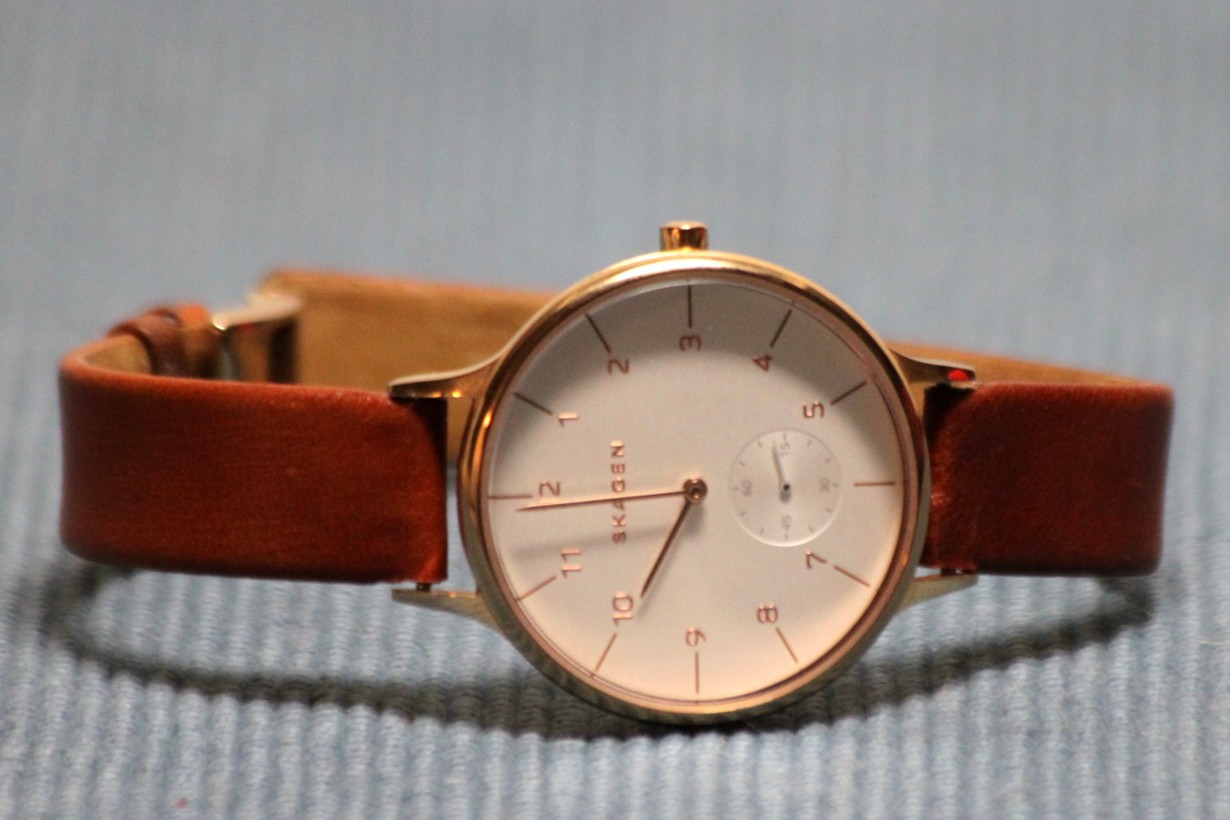 Kudoin kangaspuilla muutaman räsymaton ystävilleni. Maksuksi saadut rahat sijoitin rannekelloon. Nahkainen ranneke on miellyttävä, vaikka vaatiikin uusimisen aika ajoin. Rannekello on aina kädessä, vaikka voisihan ajan tarkastaa muualtakin. Ilman kelloa olo on hankala: silloin, jos joskus tarvitsisi tietää, paljonko kello oikeasti on! Oman kellon ajassa on huomioitu myös sopiva myöhästymisvara.
