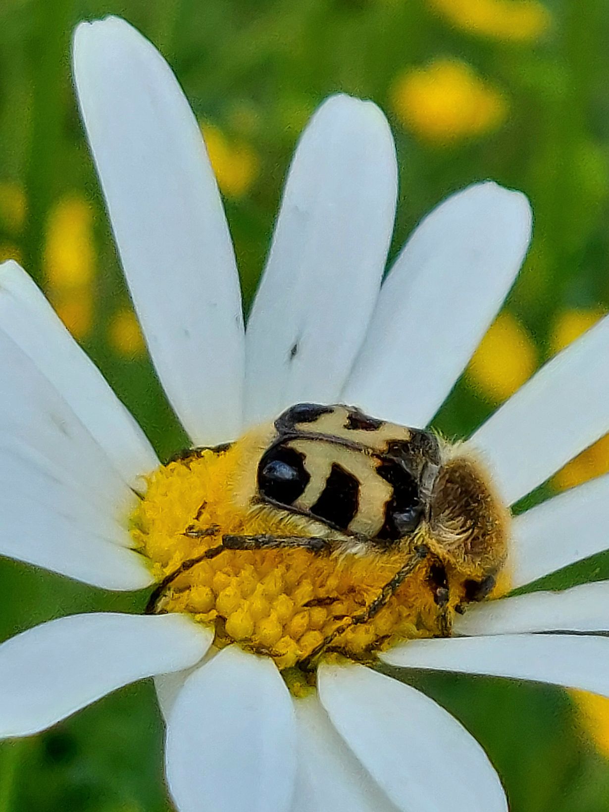 Juhannuksena löytyi päivänkakkarasta tällainen. Yritti olla, ettei huomaisi, mutta olihan tämä nyt aika jännä perhosten ja leppäkerttujen seassa.