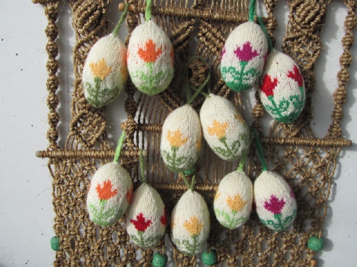 Suuri Käsityö: Lähetä kuva itse tehdyistä pääsiäiskoristeista Neulotut pääsiäismunat 15.3.2016 klo 13:03 Malli Arnen ja Carlosin kirjasta, oma toteutus ja kuva.