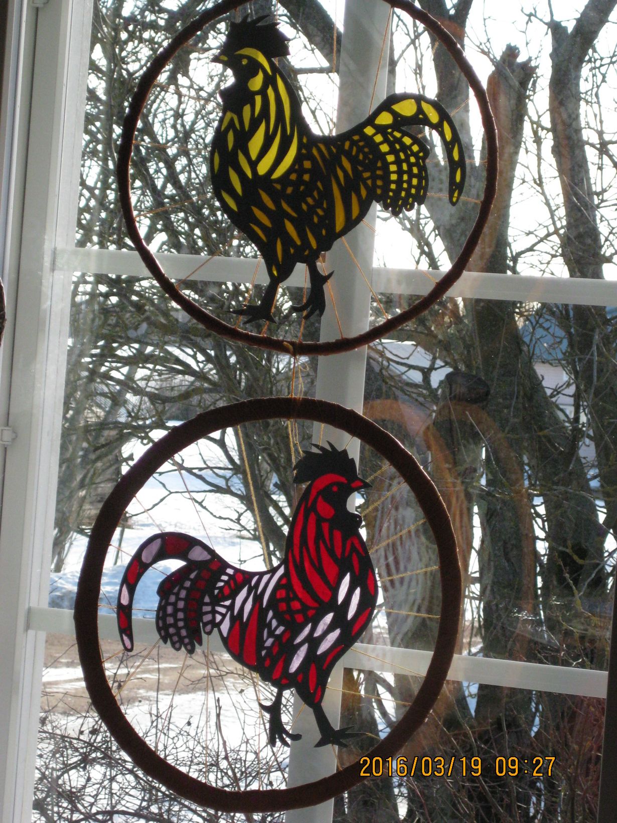Suuri Käsityö: Lähetä kuva itse tehdyistä pääsiäiskoristeista Pääsiäiskukot 19.3.2016 klo 9:45 Kartongista ja jämätilkuista tehdyt kukot. Melkein kaikki materiaali kierrätettyä.