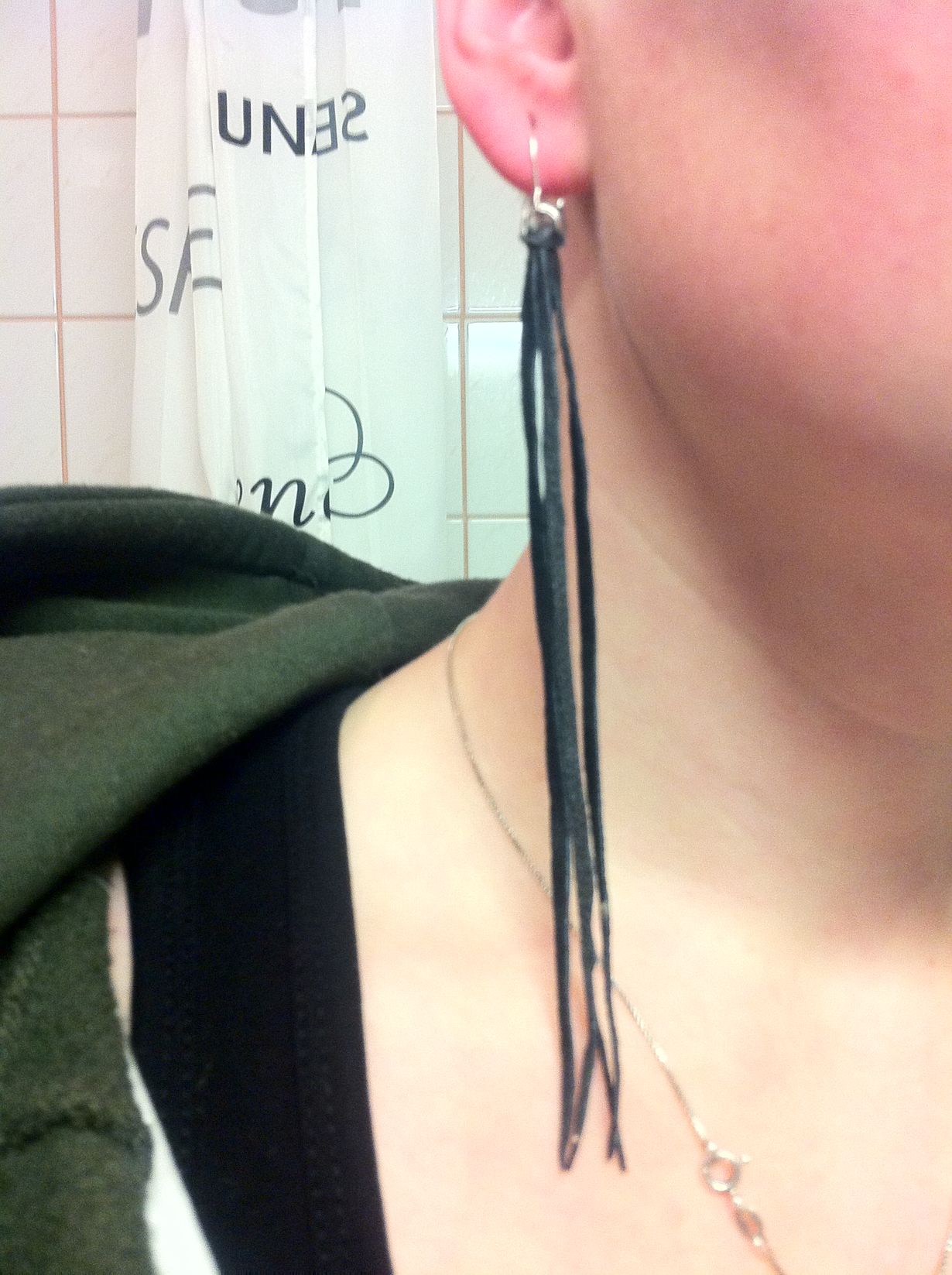 Suuri Käsityö - itse tehty koru pala vanhaa nahkatakkia 26.1.2013 klo 17:43 vanhasta nahkatakin palasta leikattuja suikaleita suvih