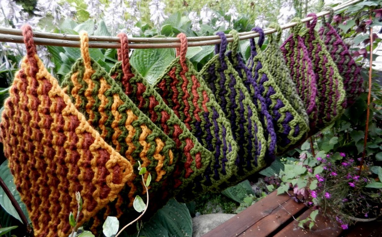 Patalappuja ristikkäin virkatuista ruudukoista