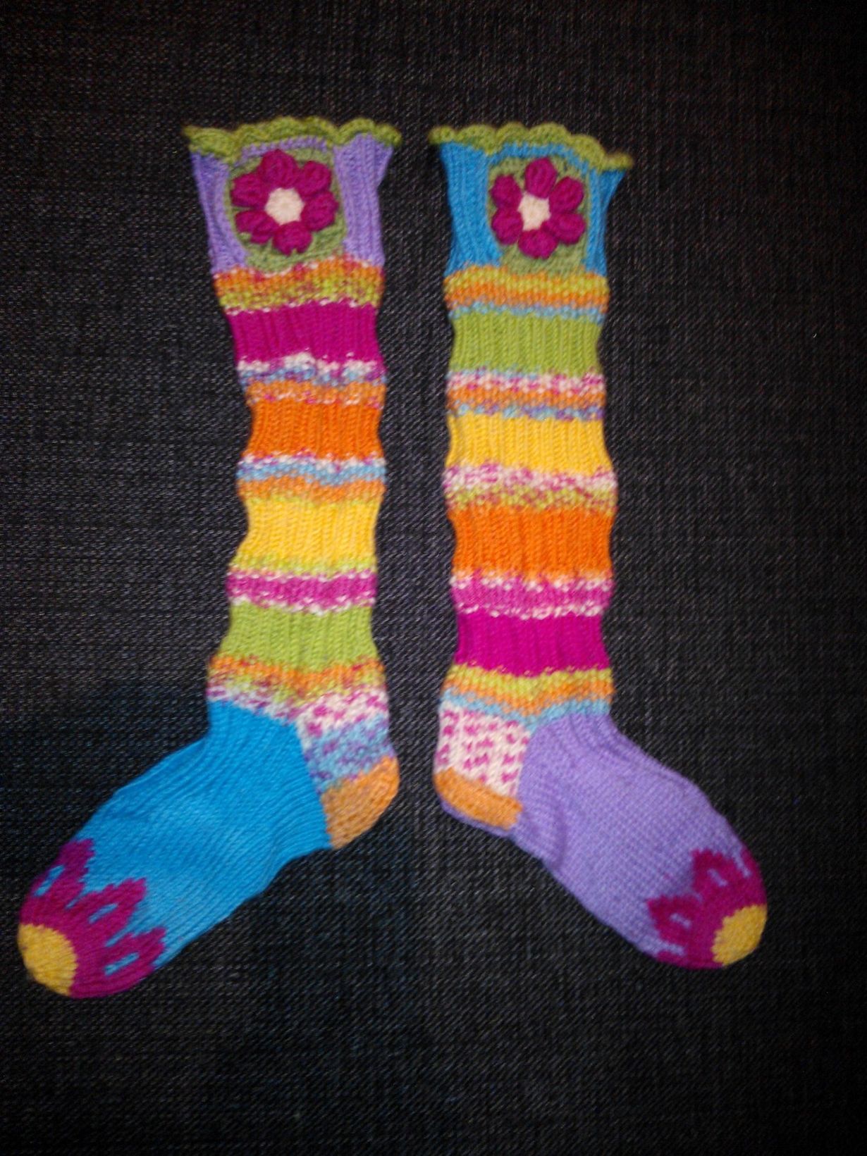 Suuri Käsityö - itse tehtyjä villasukkia Peppi Pitkätossut kukilla 30.12.2013 klo 15:17 Koululainen tilasi pitkävartiset värikkäät eriparisukat. Tyttömäisyyttä ujutin sukkiin varren ja kärjen kukilla. piijo
