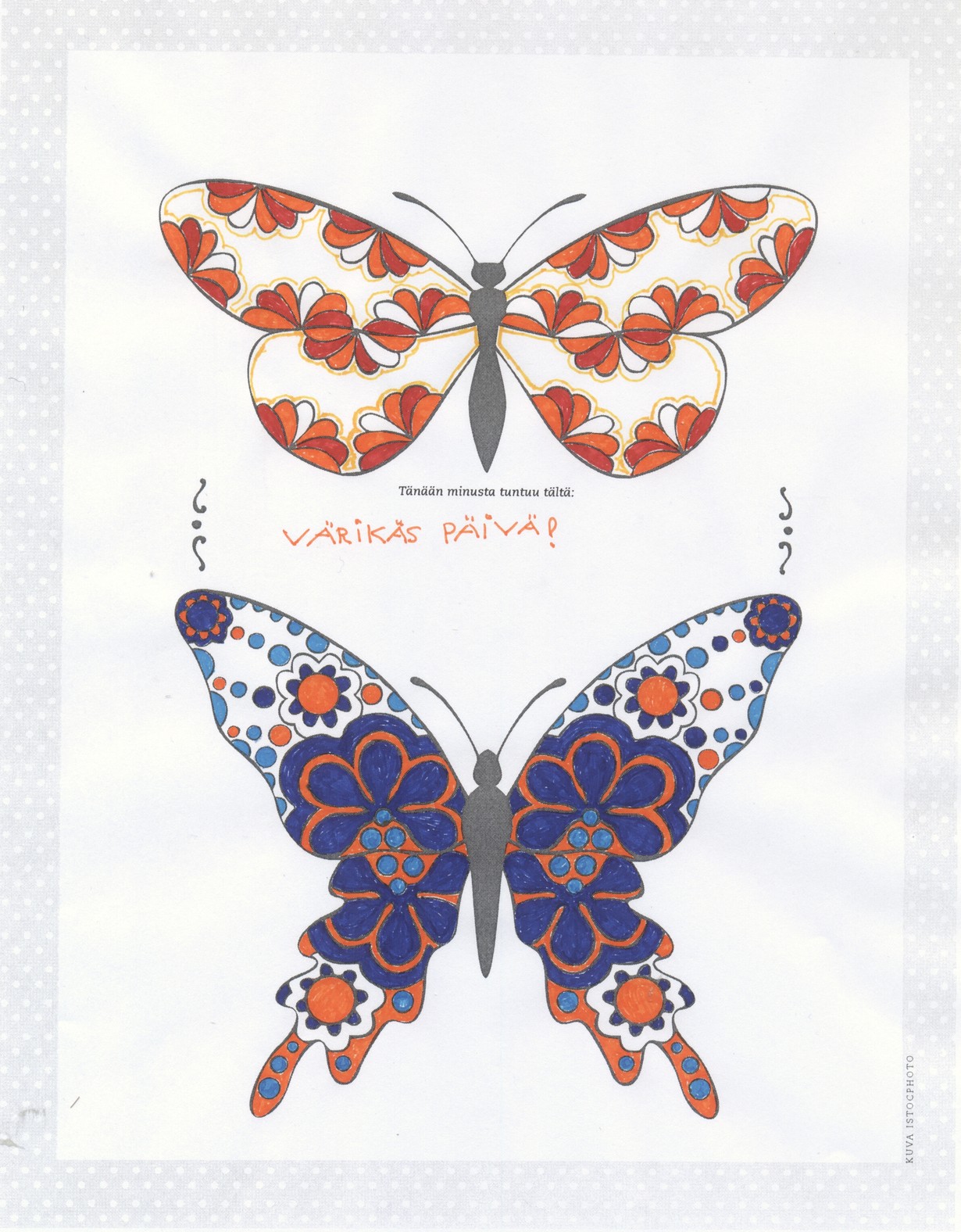 Mielenrauhaa aikuisten värityskirjasta - väritä perhoset ja voita! Perhonen - Värikäs päivä 9.8.2015 klo 12:24