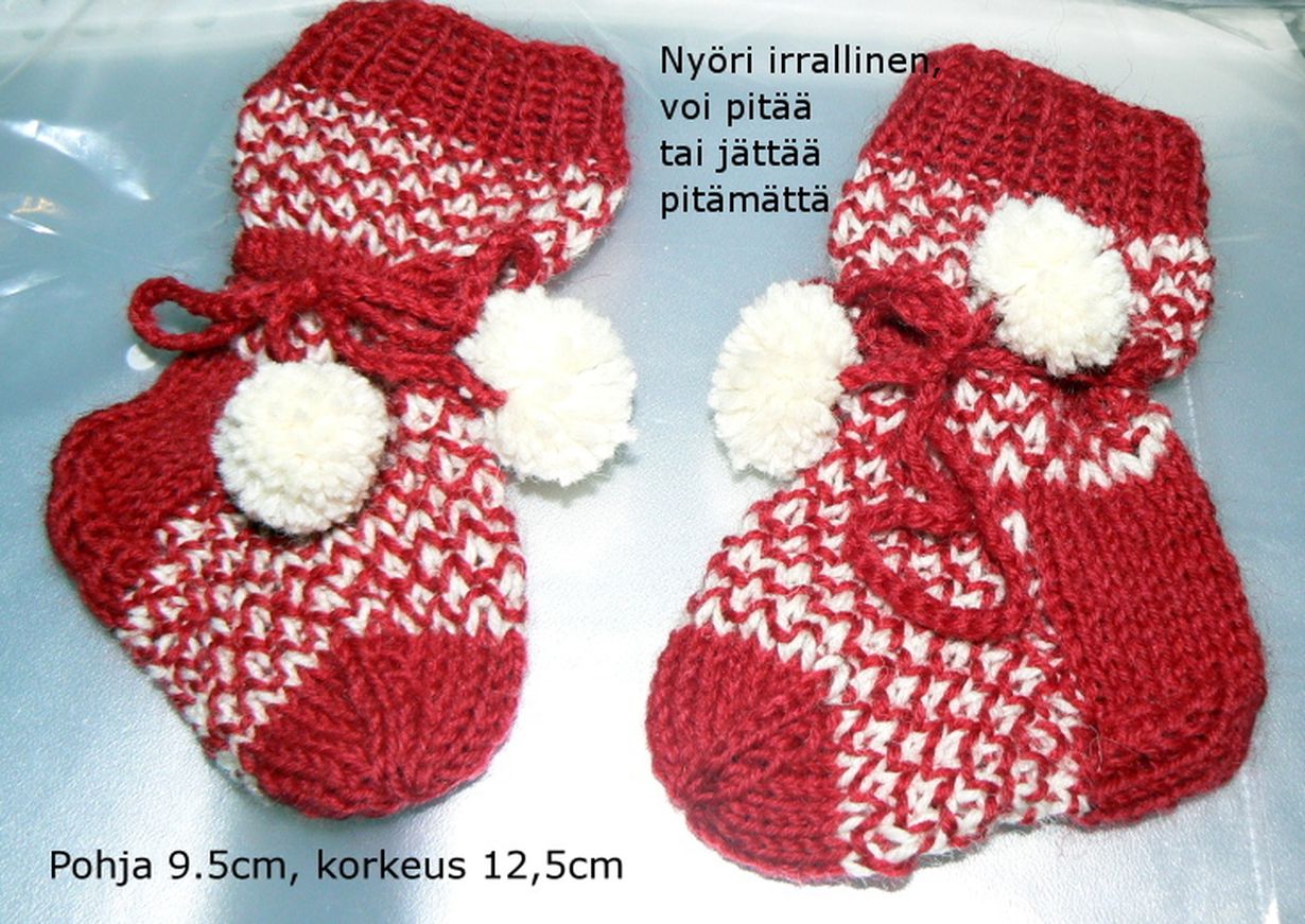 Suuri Käsityö - itse tehtyjä villasukkia Pienen tyttövauvan sukat 28.12.2013 klo 0:43 Sovelsin hiukan Broken seeds sukkamallia, lisäämällä pampulat ja nyörit. Langat nallea.