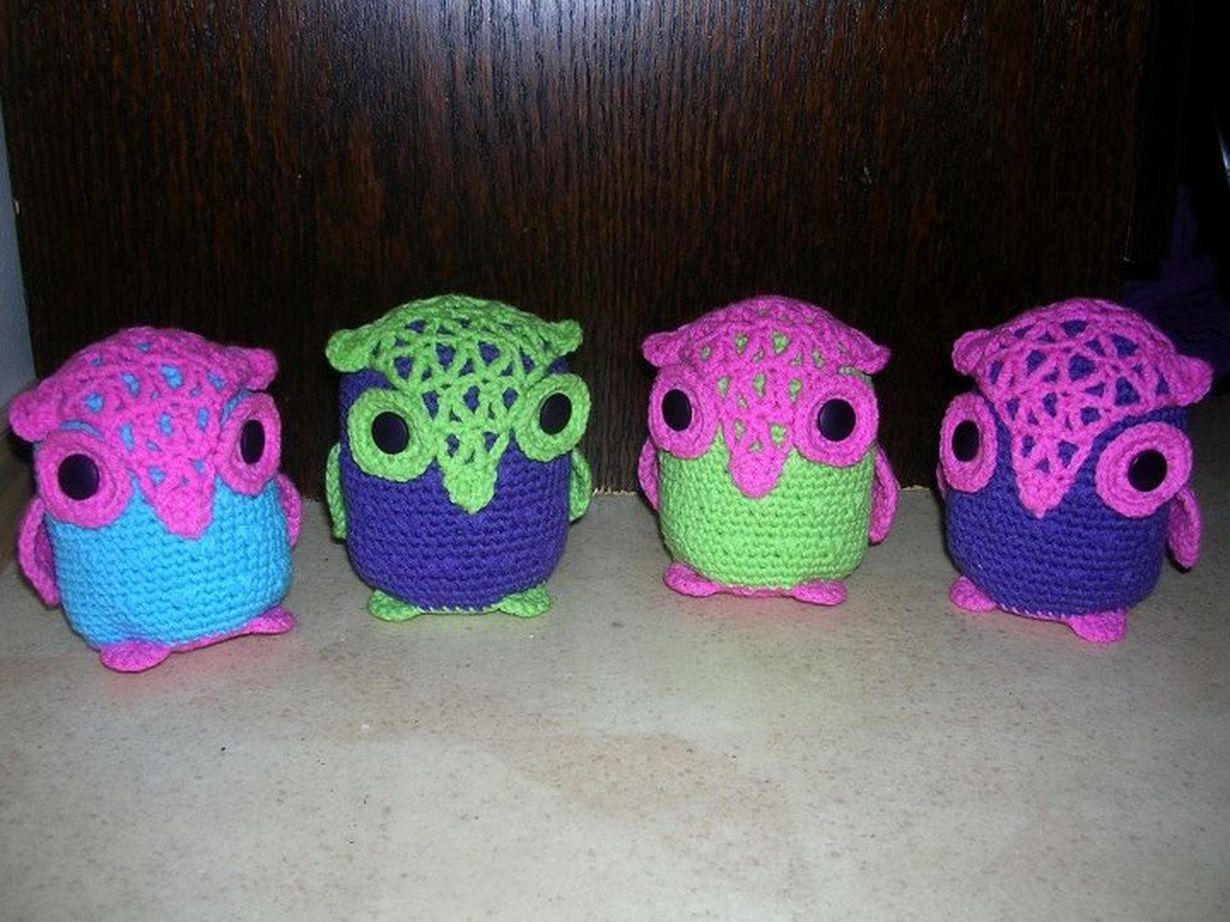 Kehitin oman virkkausohjeen pöllölle, kun en mistään mieleistä löytänyt. Novitan Miami-langoissa on juuri sopivan suloiset sävyt näille söpöläisille :)