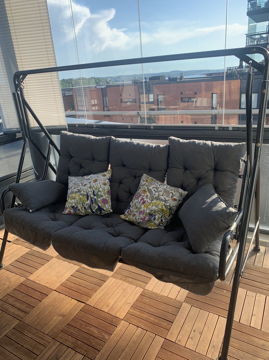 Keinu on palvellut meitä yli 15 vuotta. Ensin rivitalopihalla ja nyt kerrostalokodin terassilla. Pehmusteet ovat matkalla vaihtuneet ja katossuoja jäänyt lasitetulla terassilla pois käytöstä. Mutta kesän päiväunet keinussa ovat aina yhtä rentouttavat.