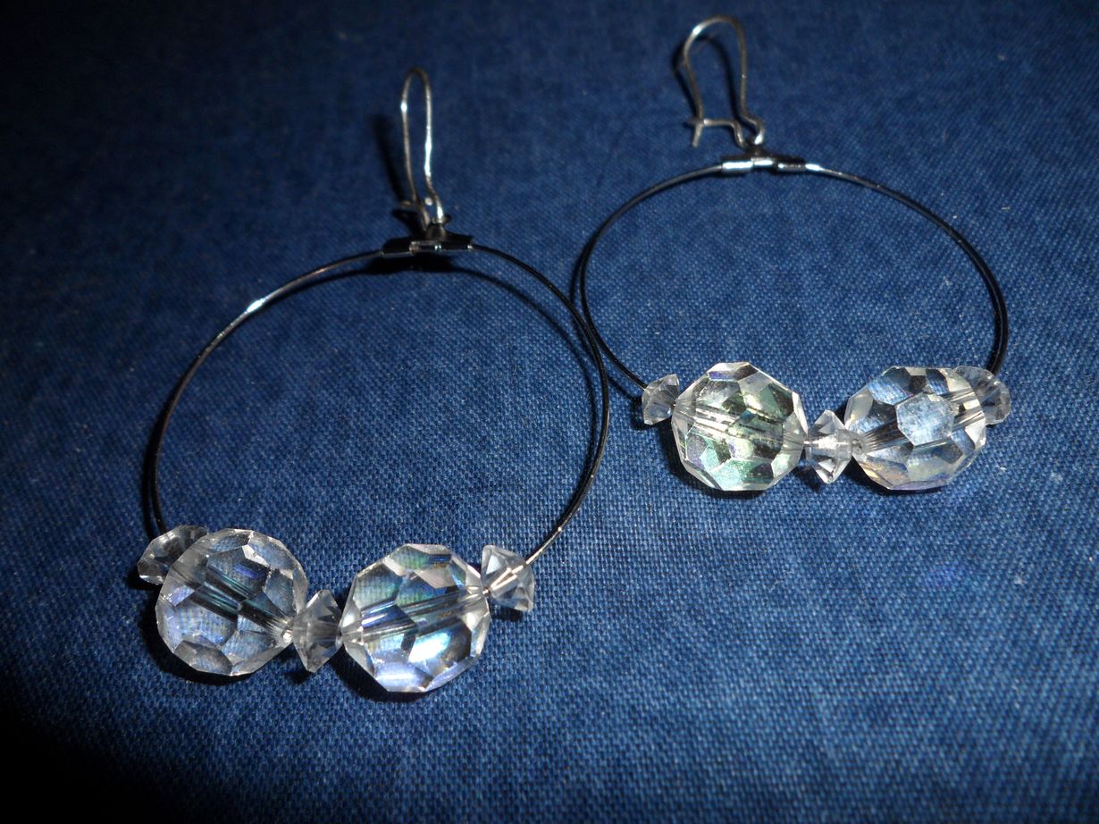 Minulla oli kivoja lasihelmiä mutta ne eivät käyneetkään siihen tarkoitukseen johon ensin suunnittelin joten ne pääsivätkin korvakoruihin