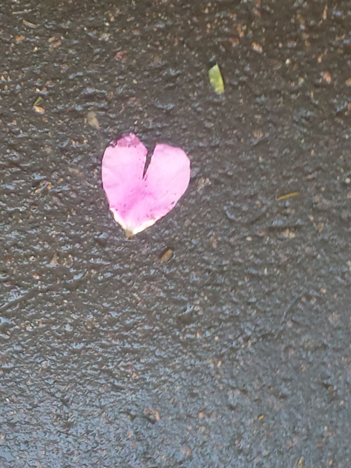Kuljin kerran vähän raskaissakin ajatuksissa, pää riipuksissa Bulevardia pitkin. Silloin silmiini osui kaunis pinkki sydän (kukan terälehti) harmaalla kostealla kadulla. Se oli niin puhutteleva kuva silmissäni. Elämä harmaata, sydän pinkkiä. Onneksi otin kuvan.