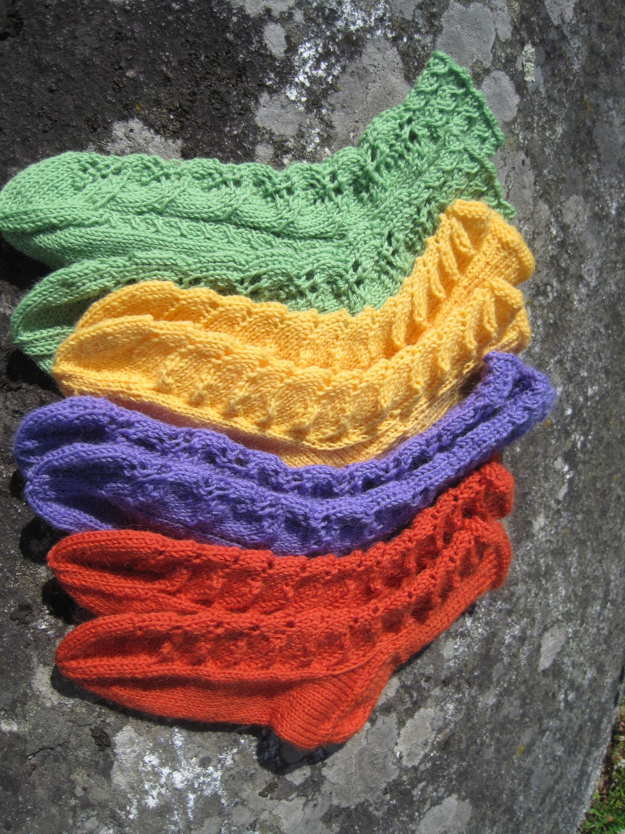 Tein lankojen lopuista erivärisiä pitsisukkia.