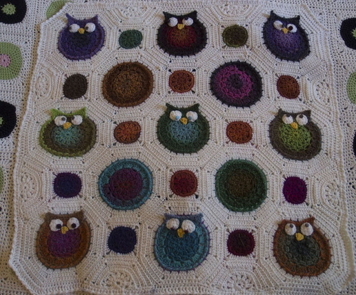 Suuri Käsityö - Itse virkattuja kodintekstiilejä Pöllöpeitto pikkuiselle 19.3.2014 klo 14:52 Vauvalahjaksi peitto Owl Obsession ohjeella PäiviH