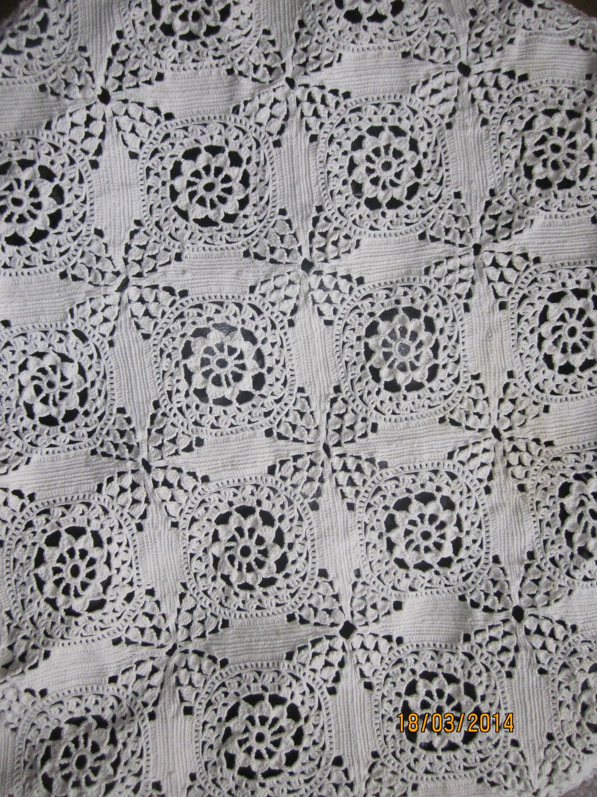 Suuri Käsityö - Itse virkattuja kodintekstiilejä pöytäliina 18.3.2014 klo 22:46 lankana 6 säikeinen kalalanka, luonnonvalkoinen. Piti tulla sängynpeitto, mutta tulikin liina katia