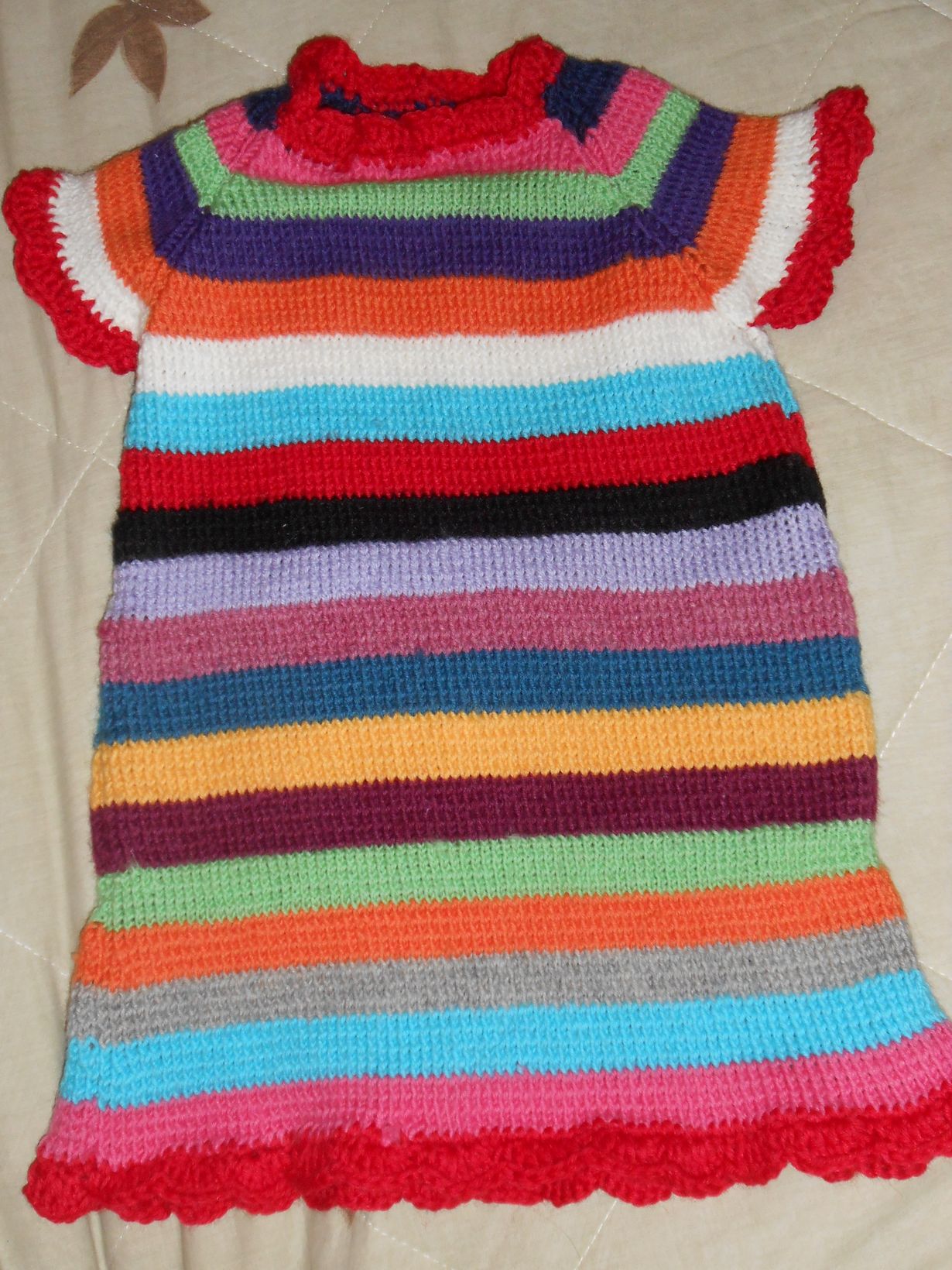 Suuri Käsityö - Jämälankakäsitöitä Raitamekko 15.5.2014 klo 18:26 2-vuotiaalle sukulaistytölle kudottu mekko jämälangoista. Monika