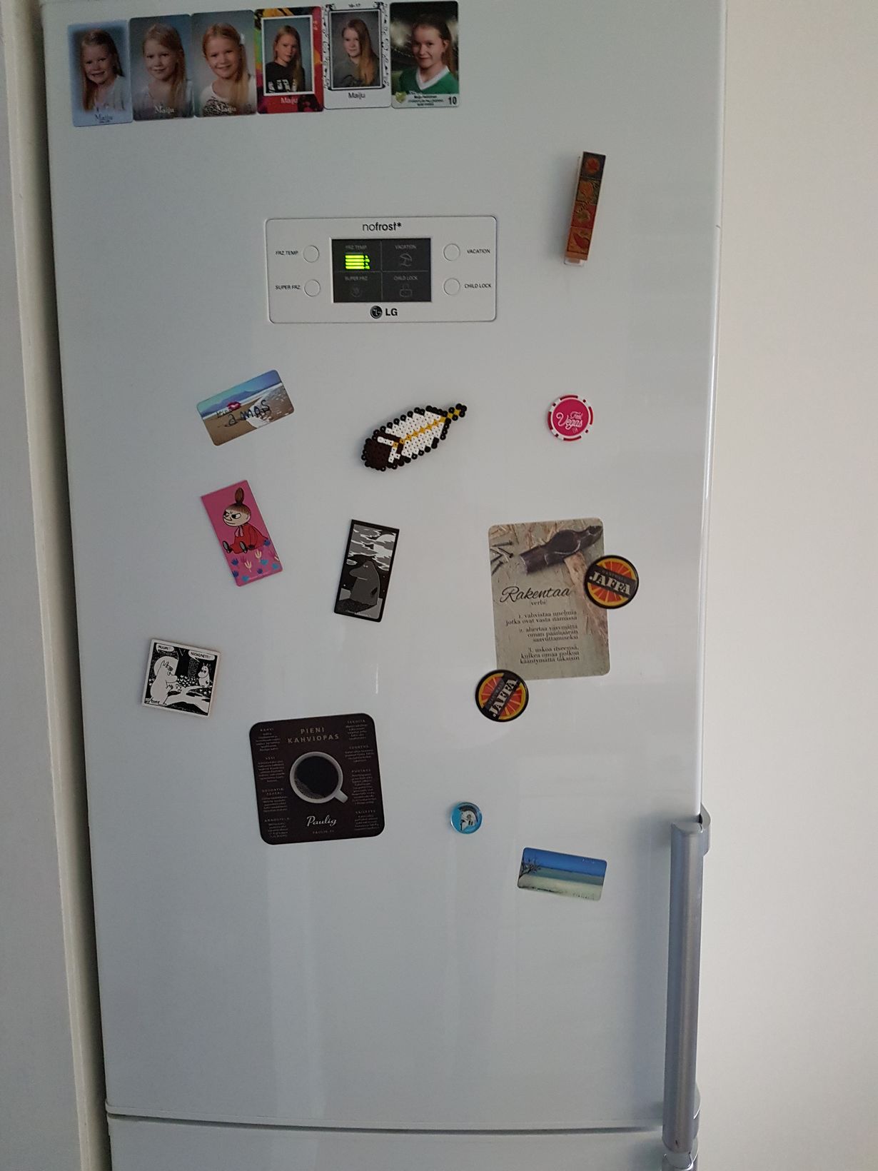 Miltä näyttää jääkaapin ovesi? Ota kuva ja voita keittiöpyyhkeet Rakentaa piusku 12.5.2017 klo 20:49 Jääkaapin ovessa mm. muistoja matkoilta, Muumeja, tyttären koko koulumatka tähän asti ja tärkeä mietelausekortti "Rakentaa".