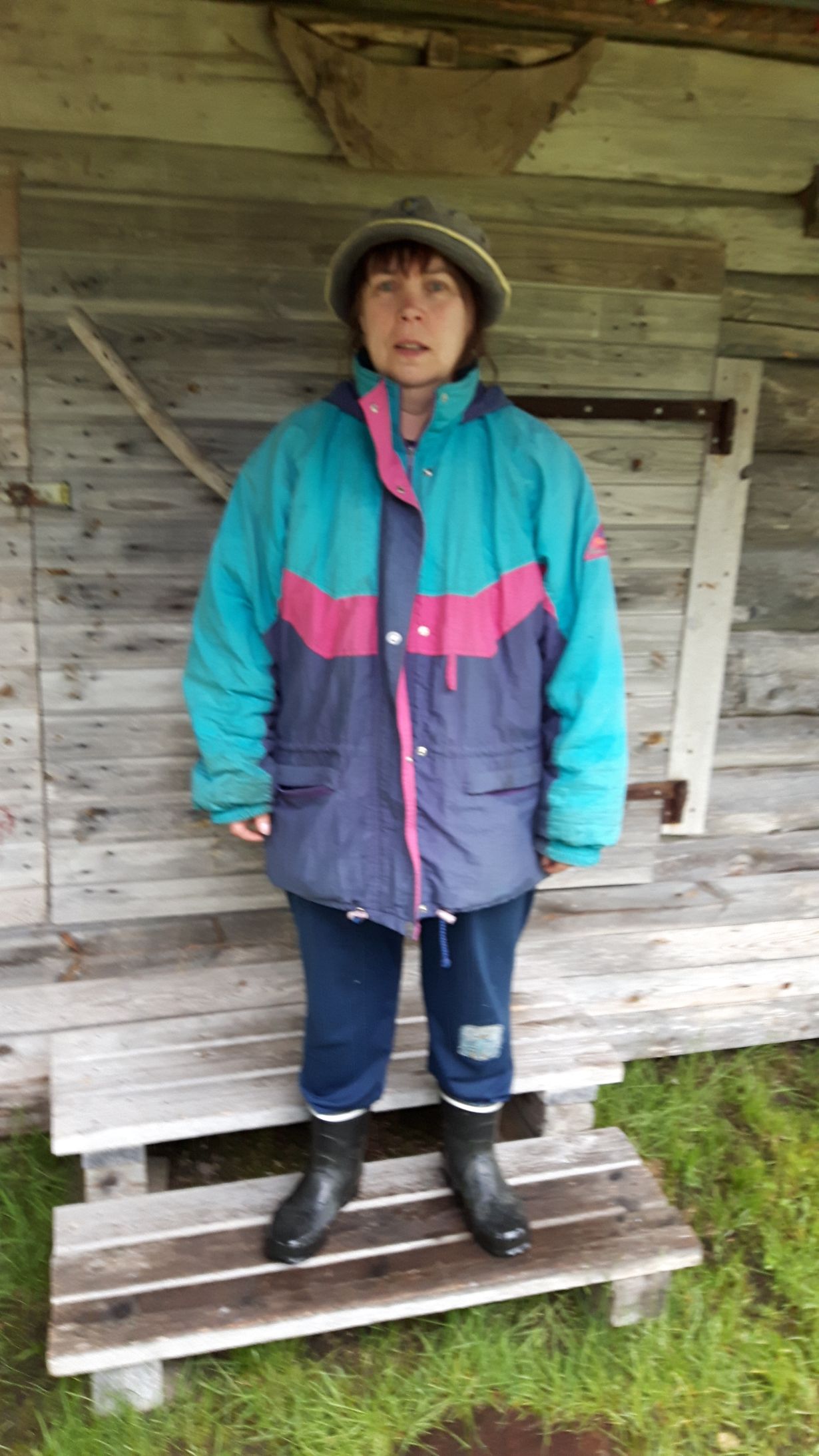 Näillä tamineilla voi huoletta touhuta mökillä, halkopinolla, saunan lämmityksessä ja vaikkapa ruohonleikkuussa. Hattu on vanha, kulunut kesähattu, mutta niin mieluinen, toppatakki yli 10 v sitten kirpparilta ostettu ja sekin välillä nokinen ja muutama reikäkin siihen on tullut nuotiotulilla. Housut ovat vanhat työhousut ja neikin paikattu kerran.