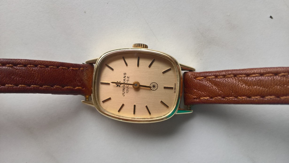 Kuvassa on äidiltäni perimäni kultainen rannekello. Äitini sai sen työskennellessään Postipankissa täyttäessään 50 v. Äiti kuoli 5 v. sitten, jonka jälkeen minä olen ylpeänä pitänyt kello ranteessani. Se on kaunis ja siro Junghans.