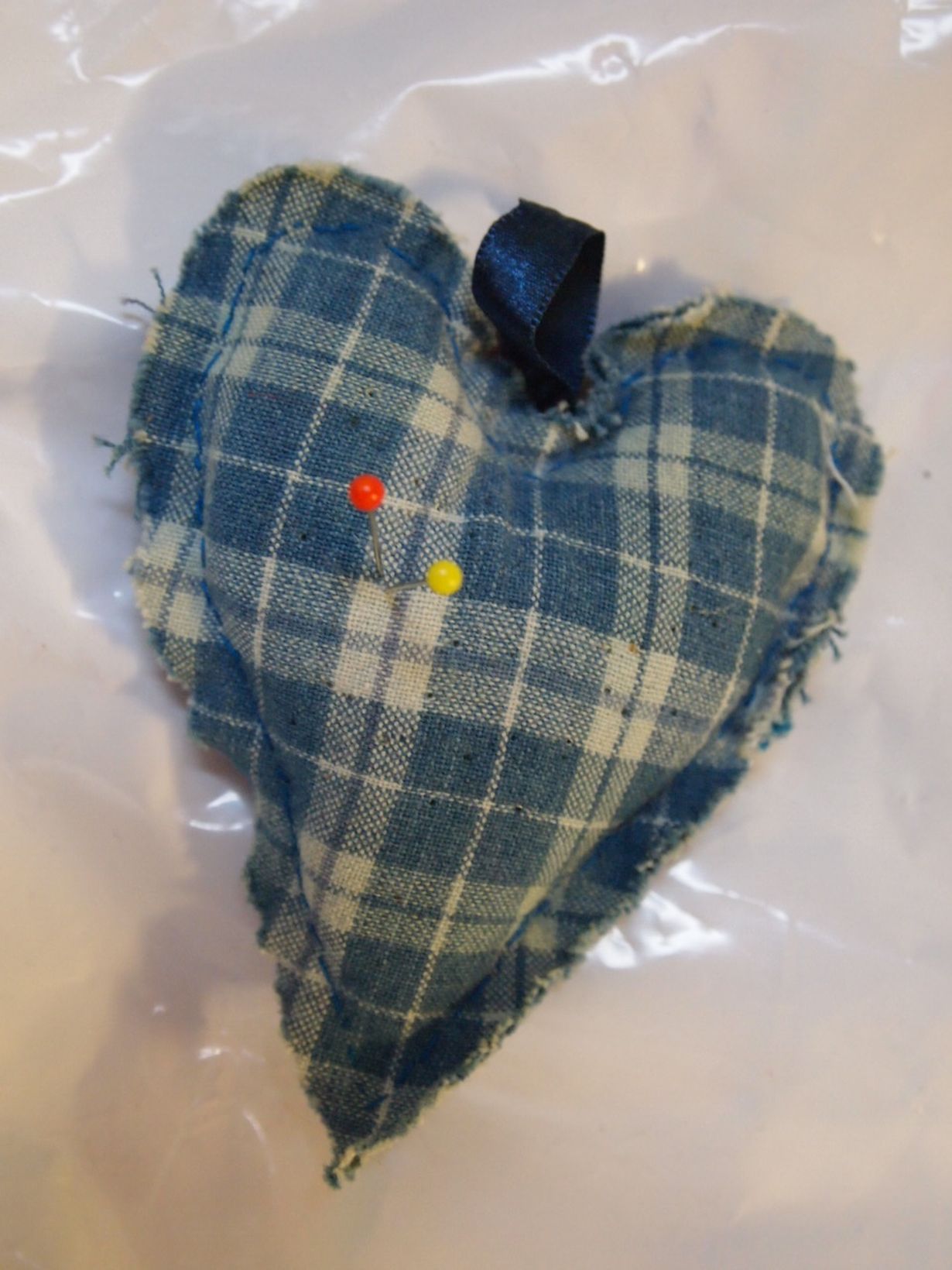 Suuri Käsityö: Lähetä kuva itse tehdystä neulatyynystä räsysydän. 7.2.2016 klo 5:17 vanha nurkkaan heitetty sydän pääsi valokuvattavaksi. pesun jälkeen ovikoristeeksi. saa tarkkailla naapureita eläkepäivinään. birirek