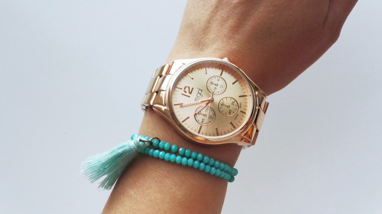 Tämä ruusukultainen rannekello on ehdoton suosikkini, sain sen juuri vähän aikaa sitten lahjaksi puolisoltani hääpäivämme kunniaksi <3 Turkoosi rannekoru on myös yksi lemppareistani ja usein tämä kaksikko onkin rannettani koristamassa.