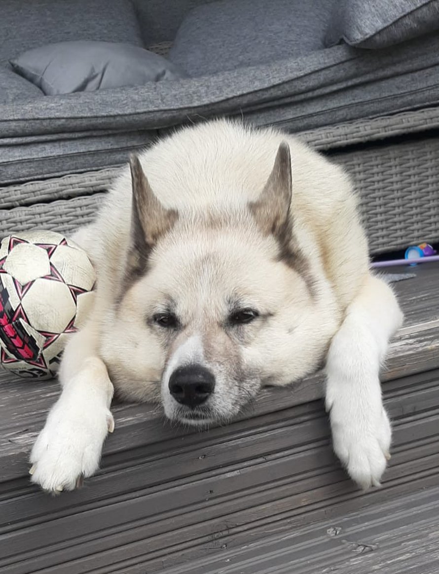 11v. koiravanhus Jippe ei tykkää yhtään lenkkeillä sadekeleillä, vaan silloin makoillaan kuistilla tai sisällä.