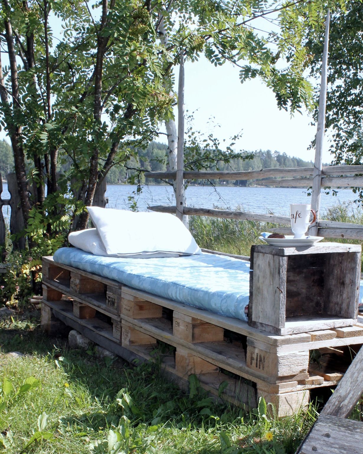 Glorian Koti - Ota kuva kesäpedistäsi Sinisen taivaan alla 10.6.2015 klo 17:32 Kuormalavoista tehty kesäpeti toimii iltaisin penkkinä nuotiolla ja aurinkovuoteena päivällä. Lieppu