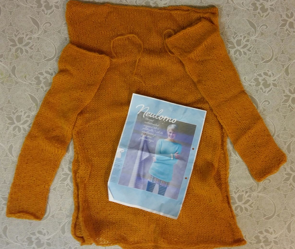 Siskoni täytti kaksi vuotta sitten 18v, jeij! Ajattelin, että neulon hänelle SK 1/13 lehden ohjeella ihanan mohairpuseron. Matka Kalajoelta Leville taittui mukavasti neuloen ja osat sainkin valmiiksi sekä olkasaumat ommeltua. Sisko ehti synttärinsä jo juhlia, kun vihdoin pyysin häntä sovittamaan "paitaa". Pettymys oli suuri, kun hihat oli kainaloista liian tiukat. Paita meni kaappiin odottamaan inspiraatiota purkamiseen ja odottaa sitä yhä. Mohair-lanka kun ei tosiaan houkuttele purkamaan! Mutta ehkä sisko saa tämän joskus, ainakin toivoisin niin :D