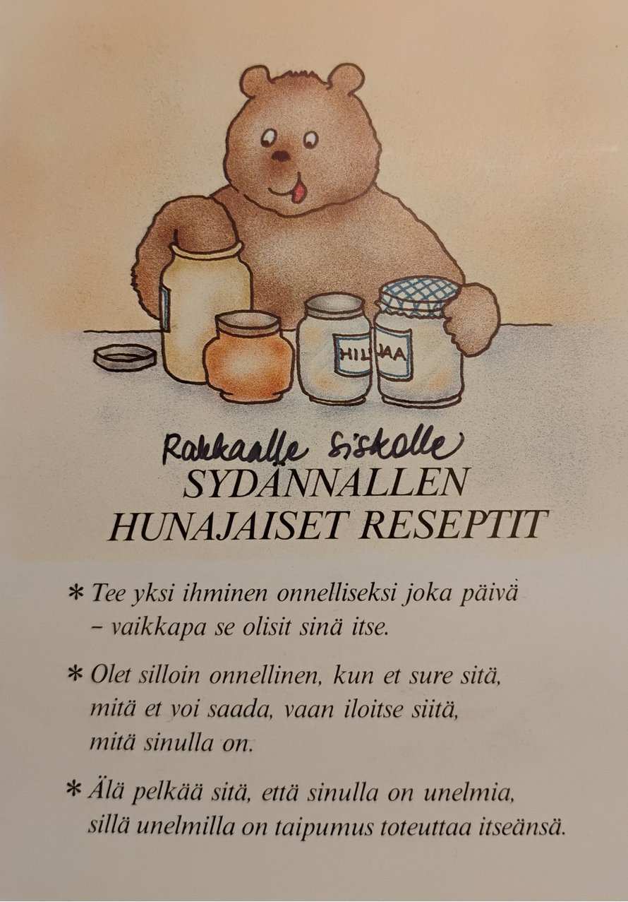 Lähetä kuvakisaan kuva postikortista, jonka olet säästänyt - voita Familonin pellavalakanat Siskon 50-vuotissynttäreilleni lähettämä kortti (26/103) Ellu klo 17:59 | 10.10.2025 Ilmoita asiattomaksi Olen jostain syystä säästänyt siskoni minulle 50-vuotissyntymäpäiväni kunniaksi lähettämän postikortin. Tuosta syntymäpäivästä on jo yli 10 vuotta aikaa. FacebookTwitterWhatsApp Tallenna Tykkää (1) Tämä ihana arki Tämä ihana arki Lähetä kuvakisaan kuva postikortista, jonka olet säästänyt - voita Familonin pellavalakanat LÄHETÄ KUVA!