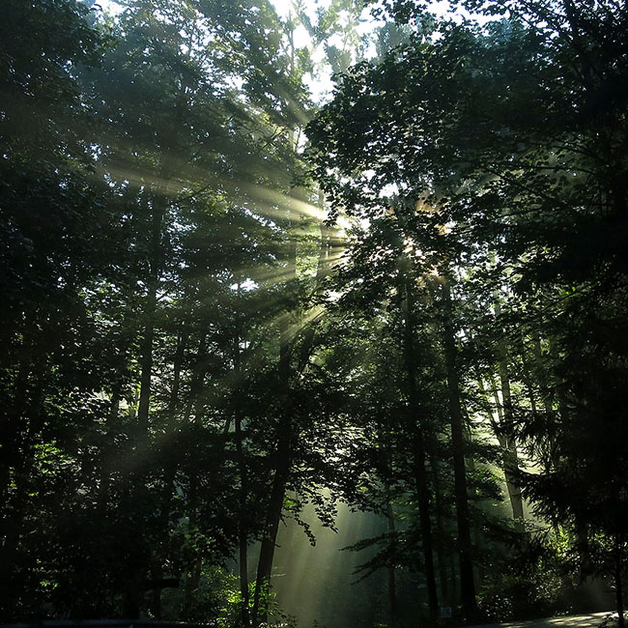 Metsä rauhoittaa, lenkkipolun varrella voi jäädä välillä ihailemaan auringonsäteitten leikkiä puiden keskellä.