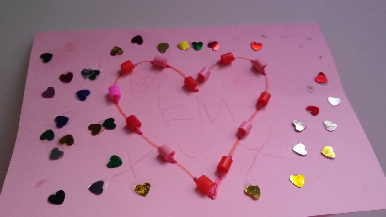 Suuri Käsityö - itse tehty ystävänpäiväkortti Suloinen ystävänpäiväkortti 2.3.2015 klo 12:15 Kortti, jonka 5-vuotias teki päiväkodissa vanhemmilleen 3 HL