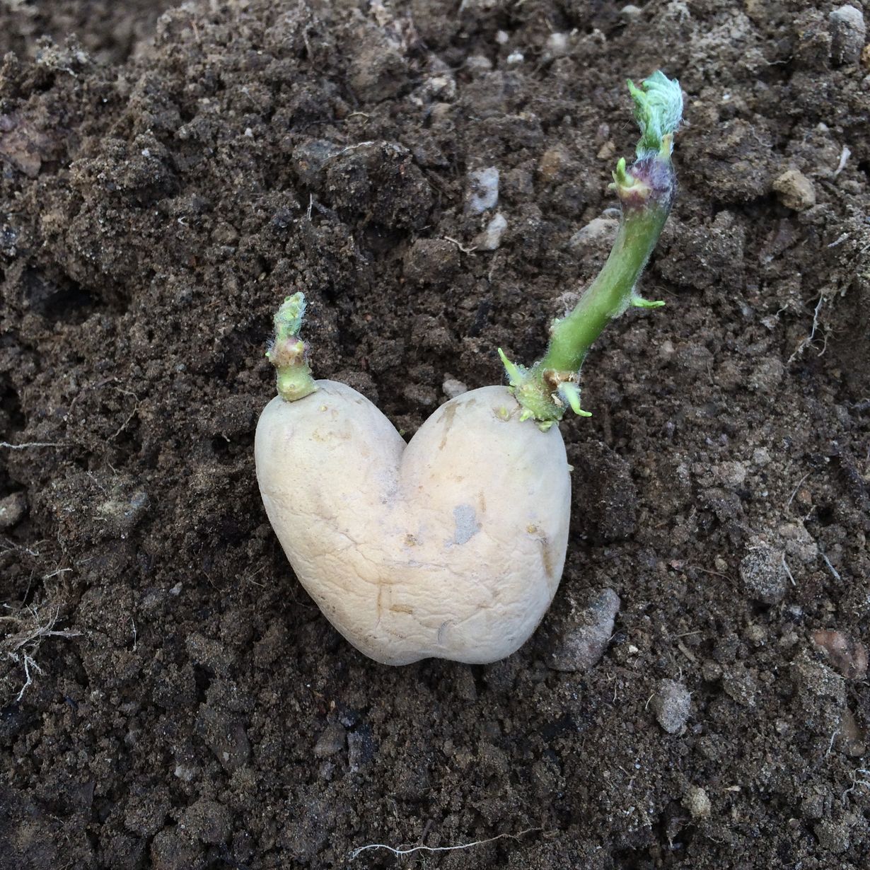 Näin sydämellinen siemenperuna löytyi istutuspuuhien keskellä. Tuli lämmin ja hyvä olo. Koti täynnä rakkautta. Jännityksellä odotetaan millaisia perunoita tämä siemenperuna tuottaa.. Lisää sydämiä?!