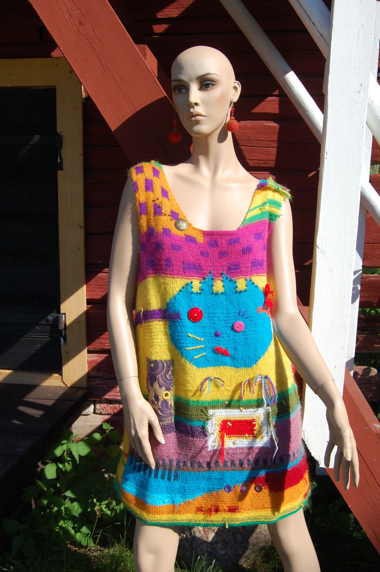 Kun neulon käsin niin teen yleensä "taidetta". En todellakaan jaksa lukea ohjeita, jos nyt niitä edes ymmärränkään. Kaikista hauskinta on vaan alkaa neulomaan ja siinä samalla suunnitella mitä siihen tulee. Ja valmiiseen kappaleeseen sitten vielä lisäillä erilaisia juttuja.