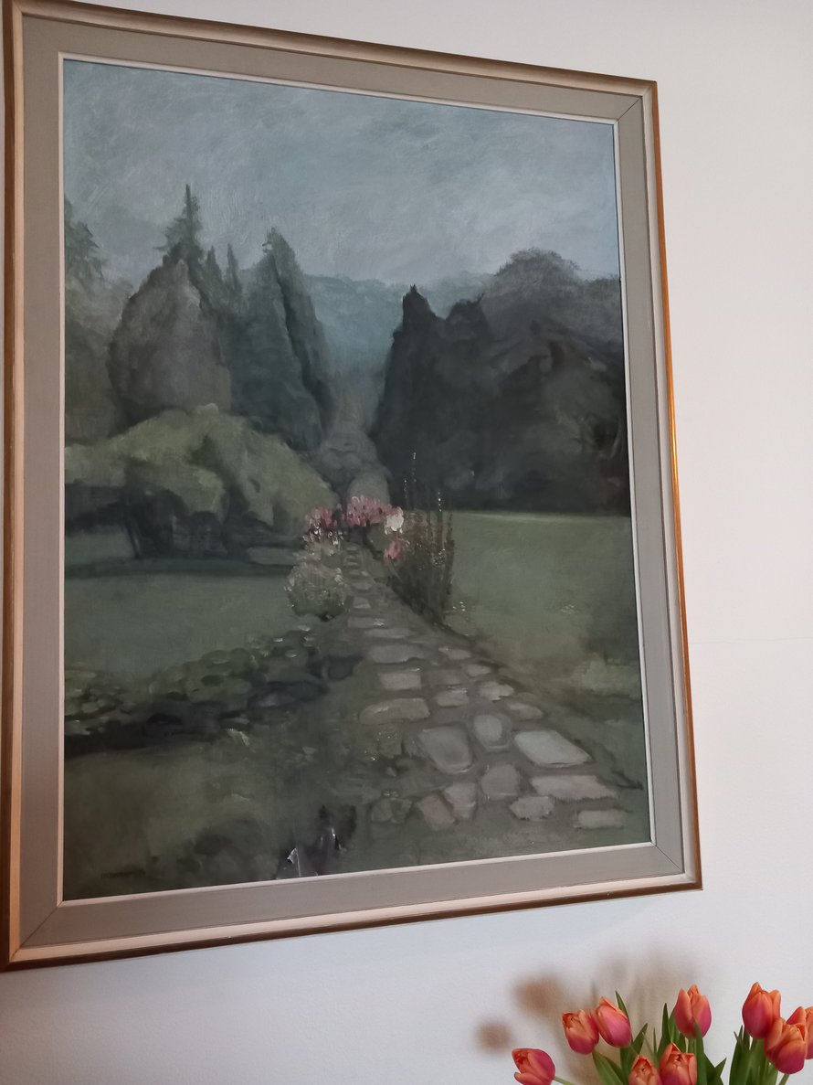 Suoraan taiteilija Mirjam Skarpilta ostin taulun isälleni 50 vuotta sitten. Nyt taulu on päässyt omalle seinälleni.