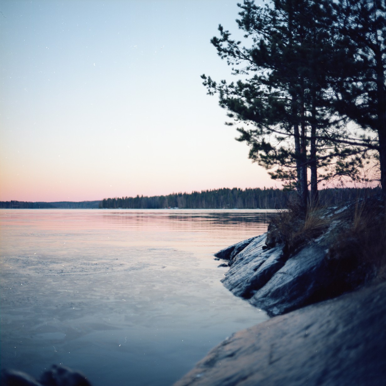 Kuva otettu Bronican keskikoon filmikameralla Ektar 100 filmille, Valkeakoskella Sääksmäen sillan kupeessa, auringon laskiessa.