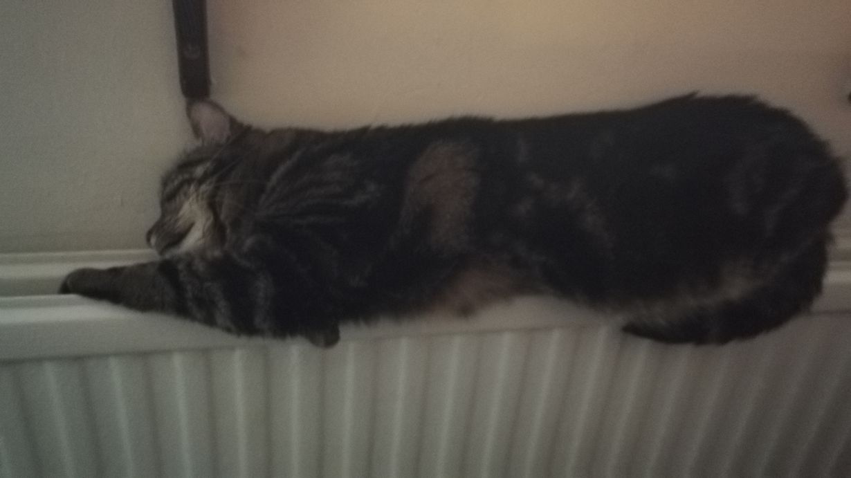 Talvisin ehdottomasti paras paikka on patterin päällä. Monesti myös työntää kuonon vielä tuonne patterin väliin :)