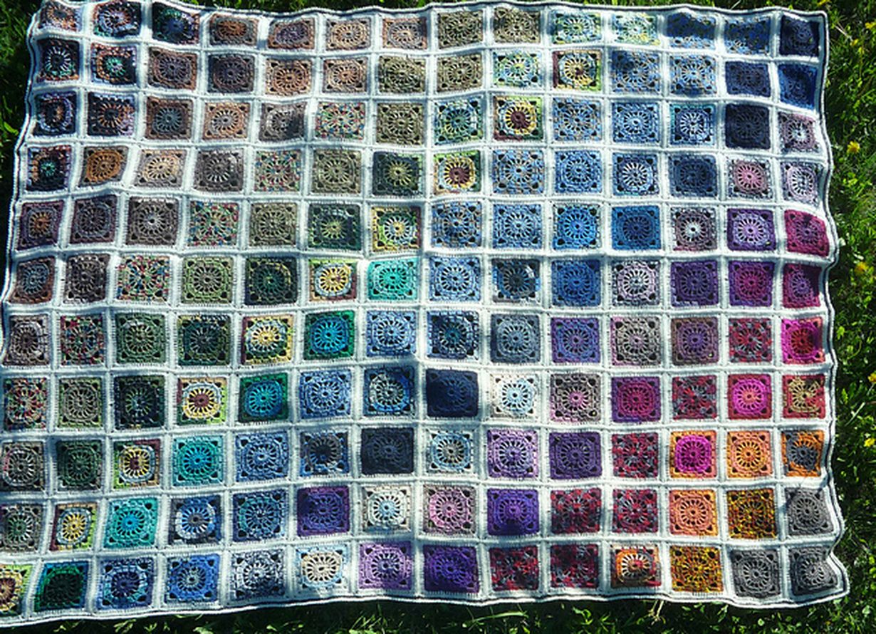 Suuri Käsityö - Jämälankakäsitöitä Torkkupeitto 19.6.2014 klo 20:28 Sekalaisia pätkävärjättyjä sukkalankajämiä virkattuna peitoksi. PäiviH