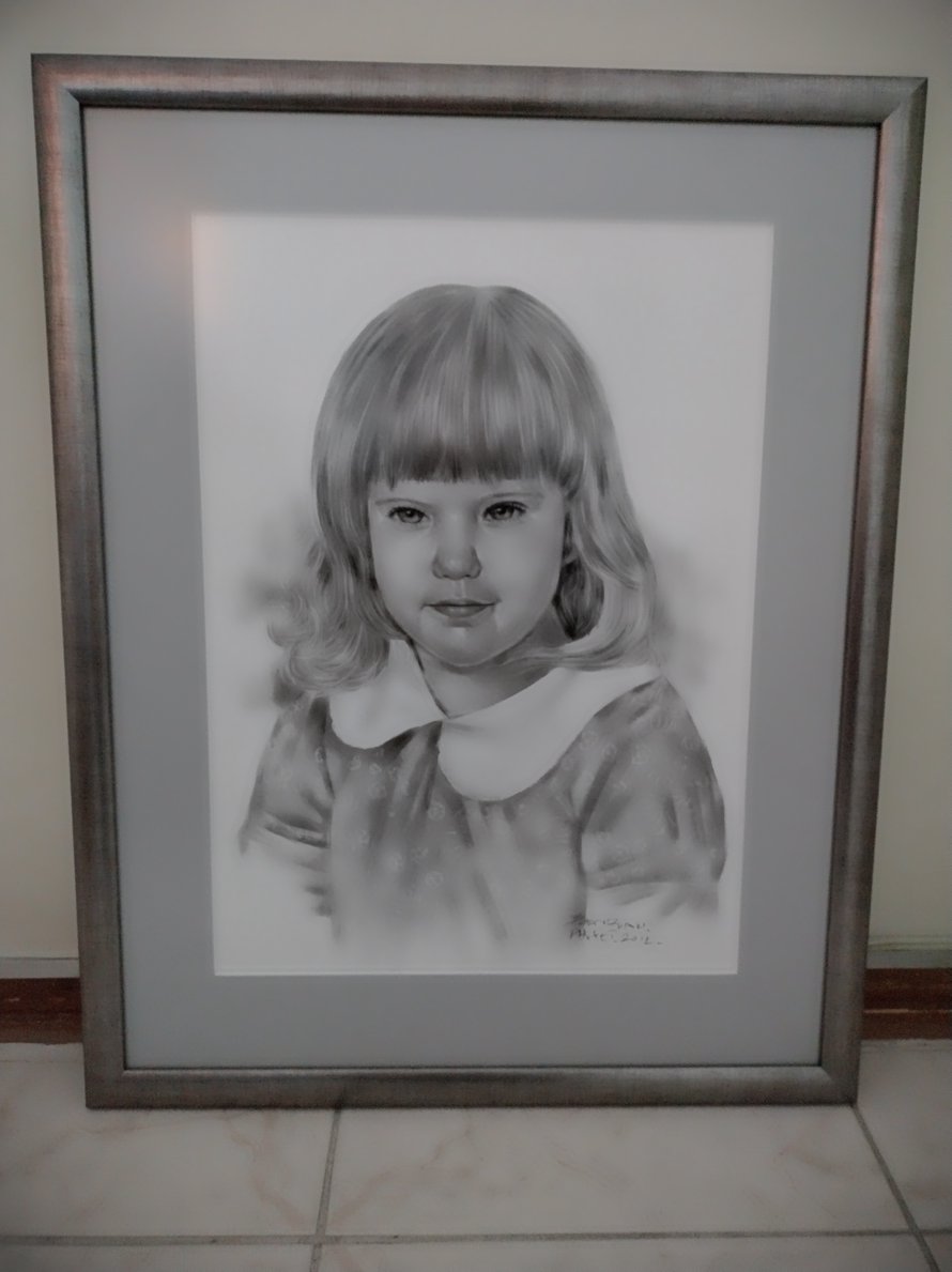 Tyttäreni kuvasta tehty lyijykynätyö Thaimaassa. Aikaa työn tekemiseen taiteilija tarvitsi vain yhden yön.