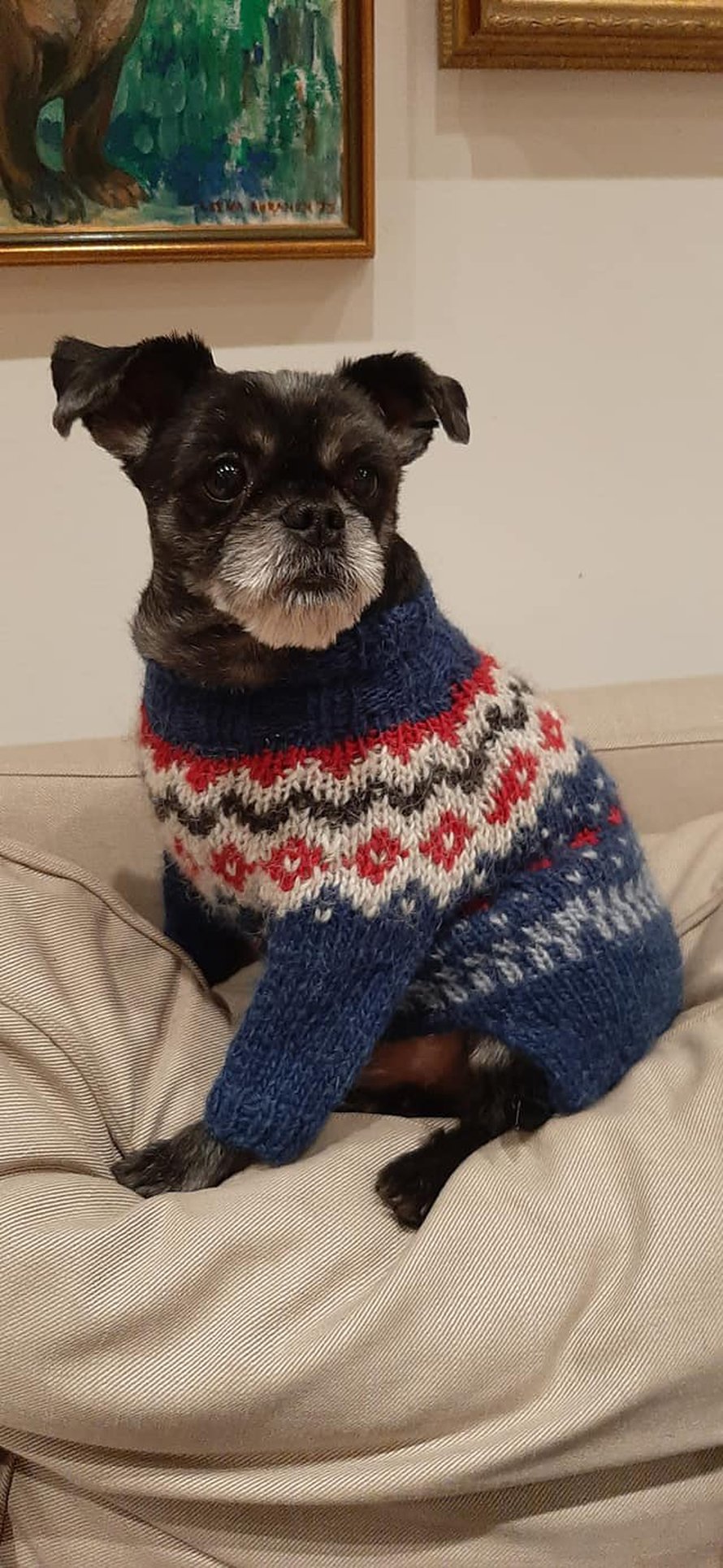 Ystäväni Ulla on kutonut affenpinseri Bambinolle näin tyylikkään neuleen.