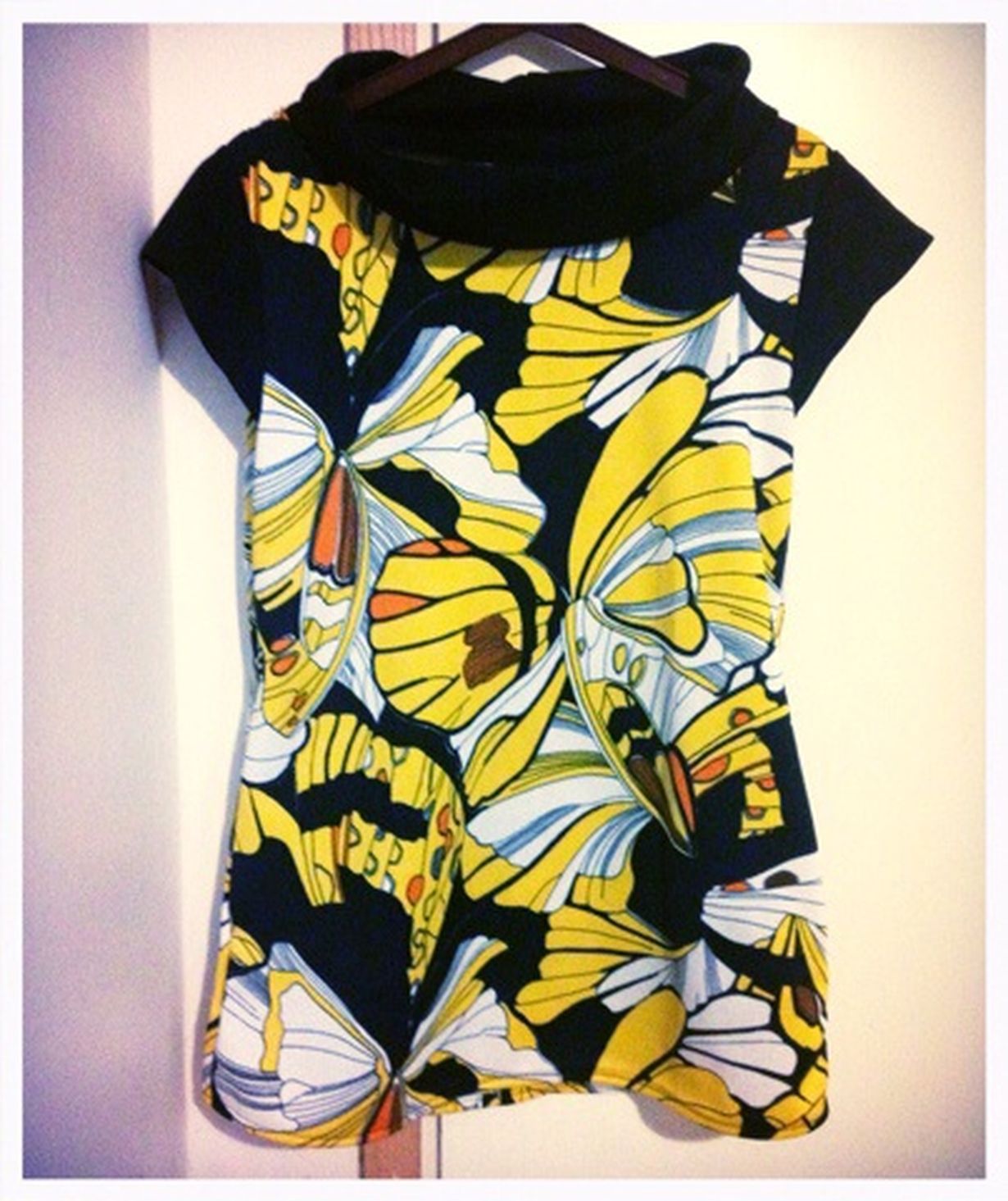 Avopuolisoni mummon vanhoja vaatteita oltiin hävittämässä. Otin niistä parhaat vielä talteen. Tästä hameesta tuli pienellä muokkauksella tunika.