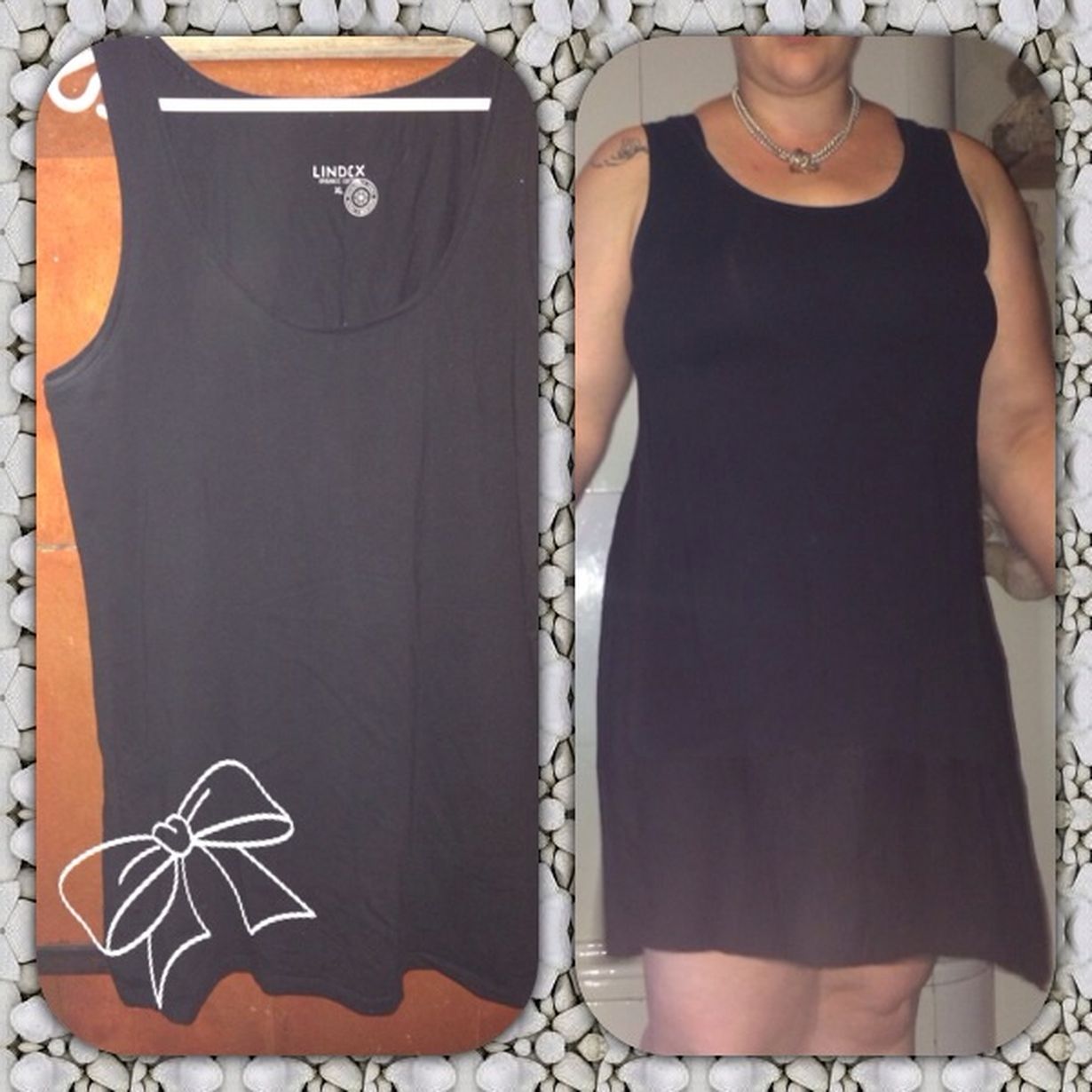 Tein mustasta vanhasta topista mekon kuumaan kesään. Trikoota helmaan ja kylkiin kunnon levennykset. Tällä kelpaa helteellä tanssahdella.
