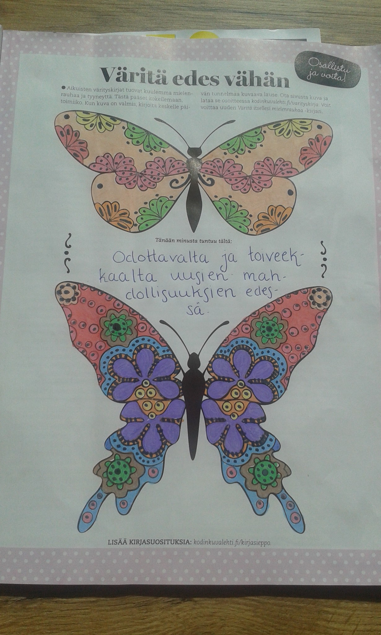 Mielenrauhaa aikuisten värityskirjasta - väritä perhoset ja voita! Väritän ensi kertaa sitten lapsuuden 6.8.2015 klo 16:59