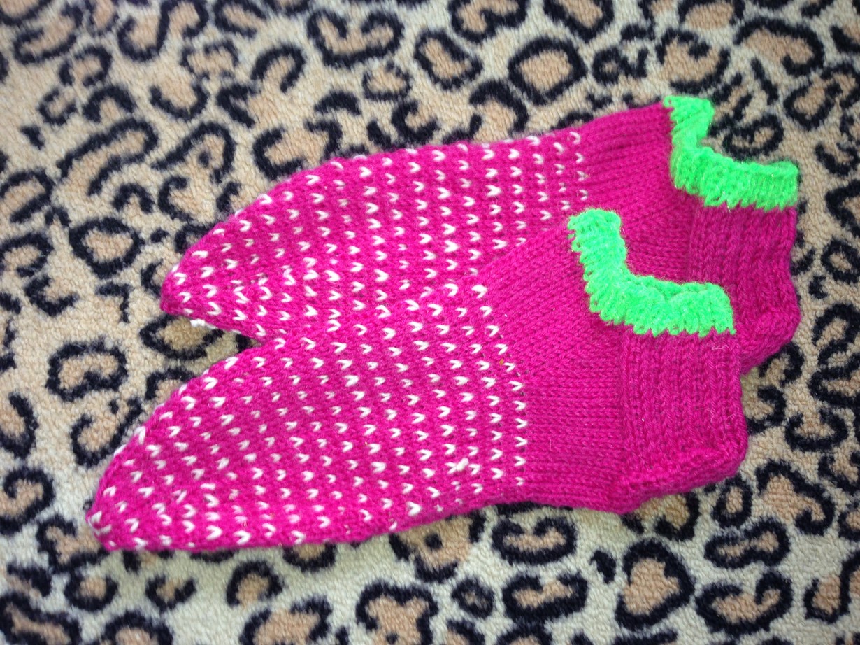 Tein ystävälleni synttäri lahjaksi mukavat koti sukat. Sisätiloissa ja kesällä ei tarvitse pitkää vartta joten olen jättänyt varret pois. Itse pidän villasukkia ympäri vuoden ja varrettomat ovat kesällä mitä parhaimmat villasukat. luovalla mielikuvituksella saa aikaiseksi vaikka minkänäköisiä villasukkia.