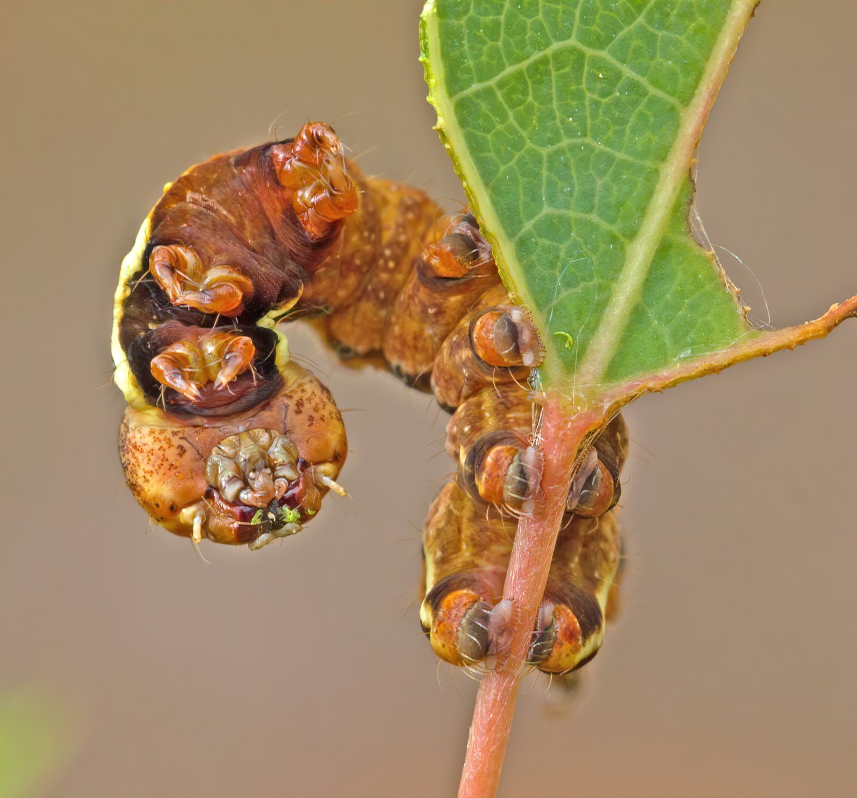 Haapanirkko on melko harvinainen ja Suomessa eteläinen yöperhoslaji. Metsälenkillä haapanirkon toukka kalusi haavan lehteä. Kun kumarruin ottamaan kuvaa niin se kurkisti veikeästi lehden takaa.