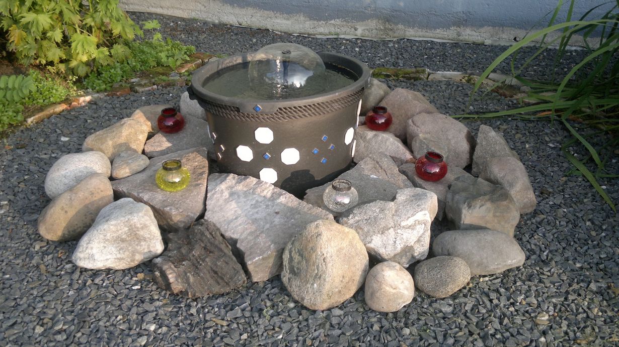 Järven rannalla asuneelle vesi on kiva elementti. Tämän verran sain sitä omalle pihalleni kivien ja laastiastian avulla.